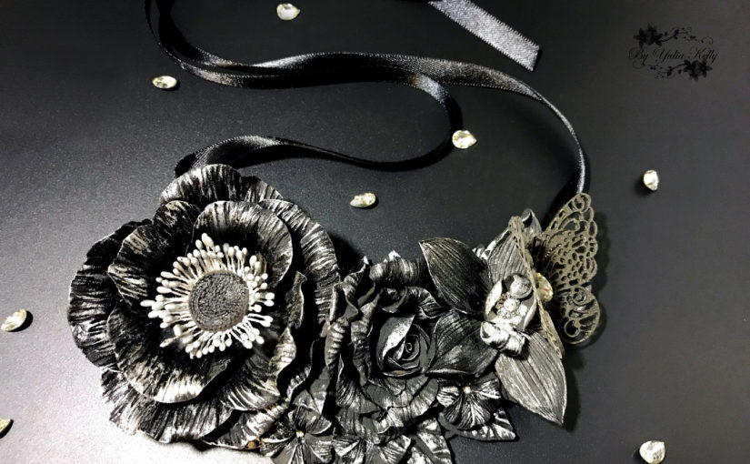 Black Eustoma Necklace Carmen. An incredible and very beautiful necklace of polymer clay.