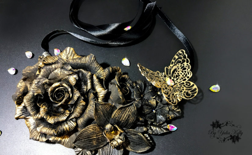 Black Rose Necklace Agata. An incredible and very beautiful necklace of polymer clay.